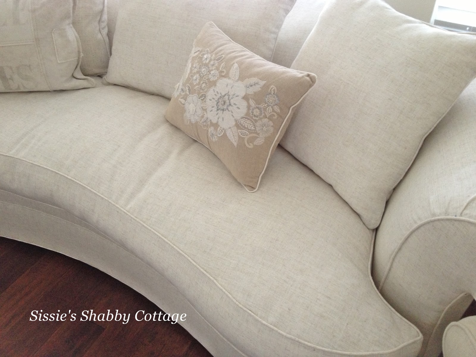 I love your curvy couch too, Sissie, and the pillow is adorable!